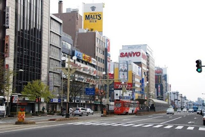 Cidade de Tomakomai, na costa sul de Hokkaido. Uma fábrica de papel com 15 chaminés 15 em pleno centro da cidade. Aliás, a avenida principal nasce à porta da fábrica da Oji Paper, um dos gigantes industriais japoneses. Vista do 16.º andar do meu quarto de hotel... Curiosamente, não cheirava a Estarreja.